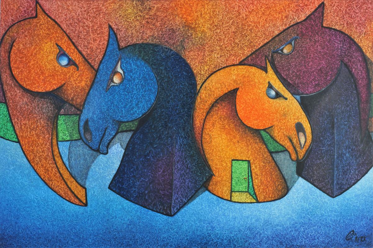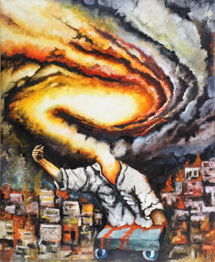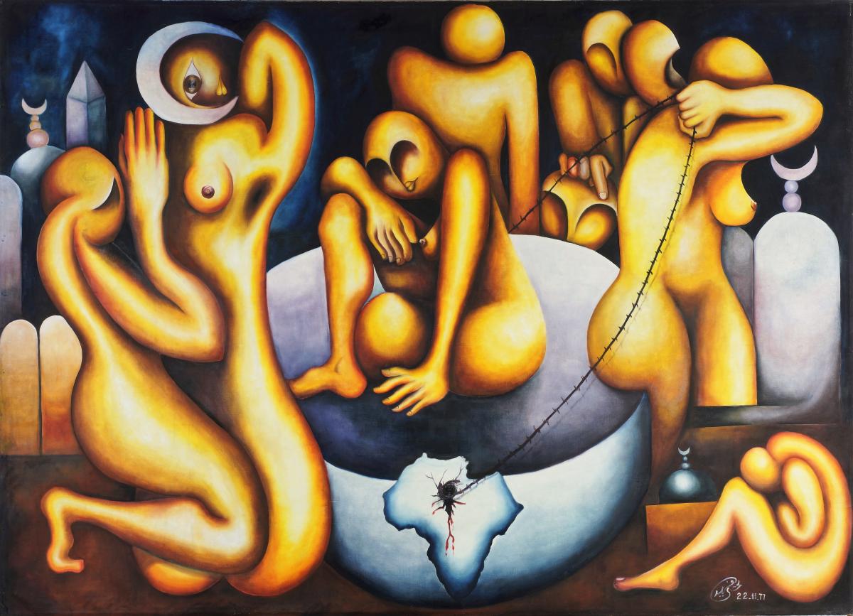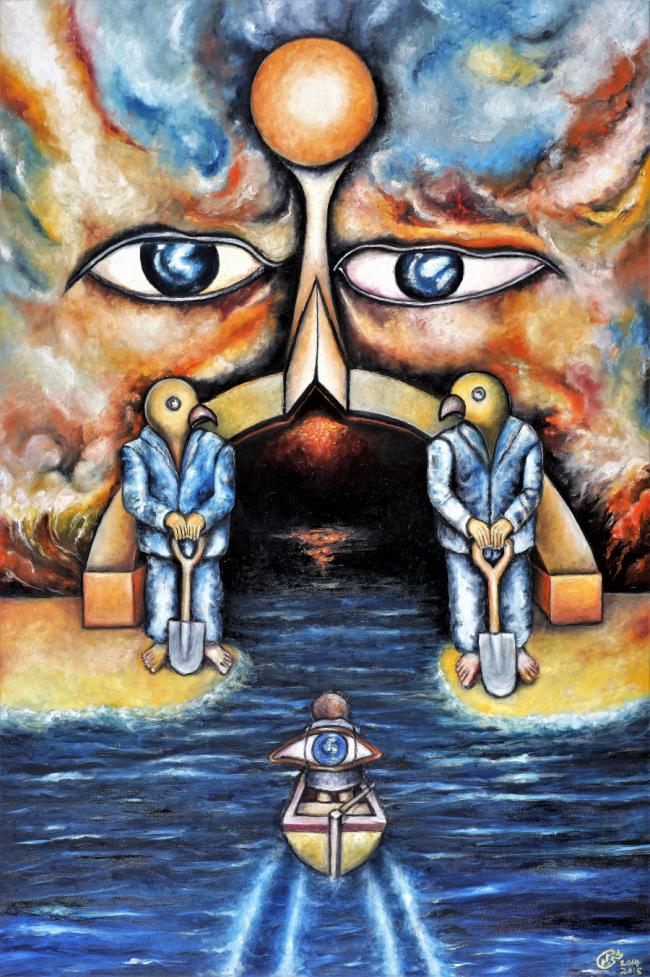 In einer einzigartigen Symbiose aus Symbolik, Farbe und Technik dokumentiert der Künstler Farid Ben Yahia seine Reaktionen auf weltpolitisch relevante Zeitzeichen und Spannungsfelder seiner Lebens- und Schaffenszeit. (Umwelt, Politik, Krieg, Menschenrechte, Flucht, Hunger, etc).